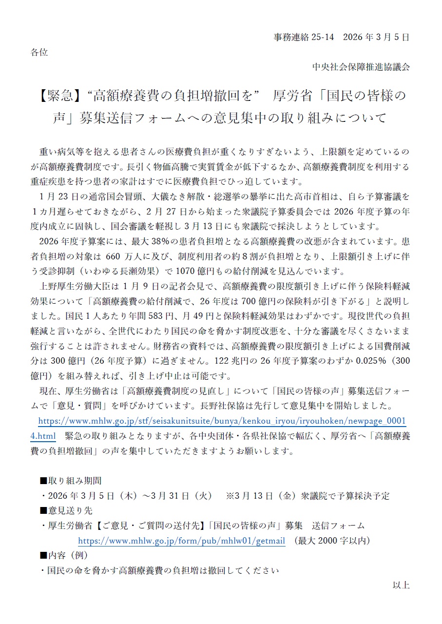 京都の社会保障制度の改善をめざして、医療・福祉関連の諸団体、労働組合、市民団体、女性団体などが集まり、1956年に創設されました。 共同して社会保障・社会福祉の充実の運動をすすめています。