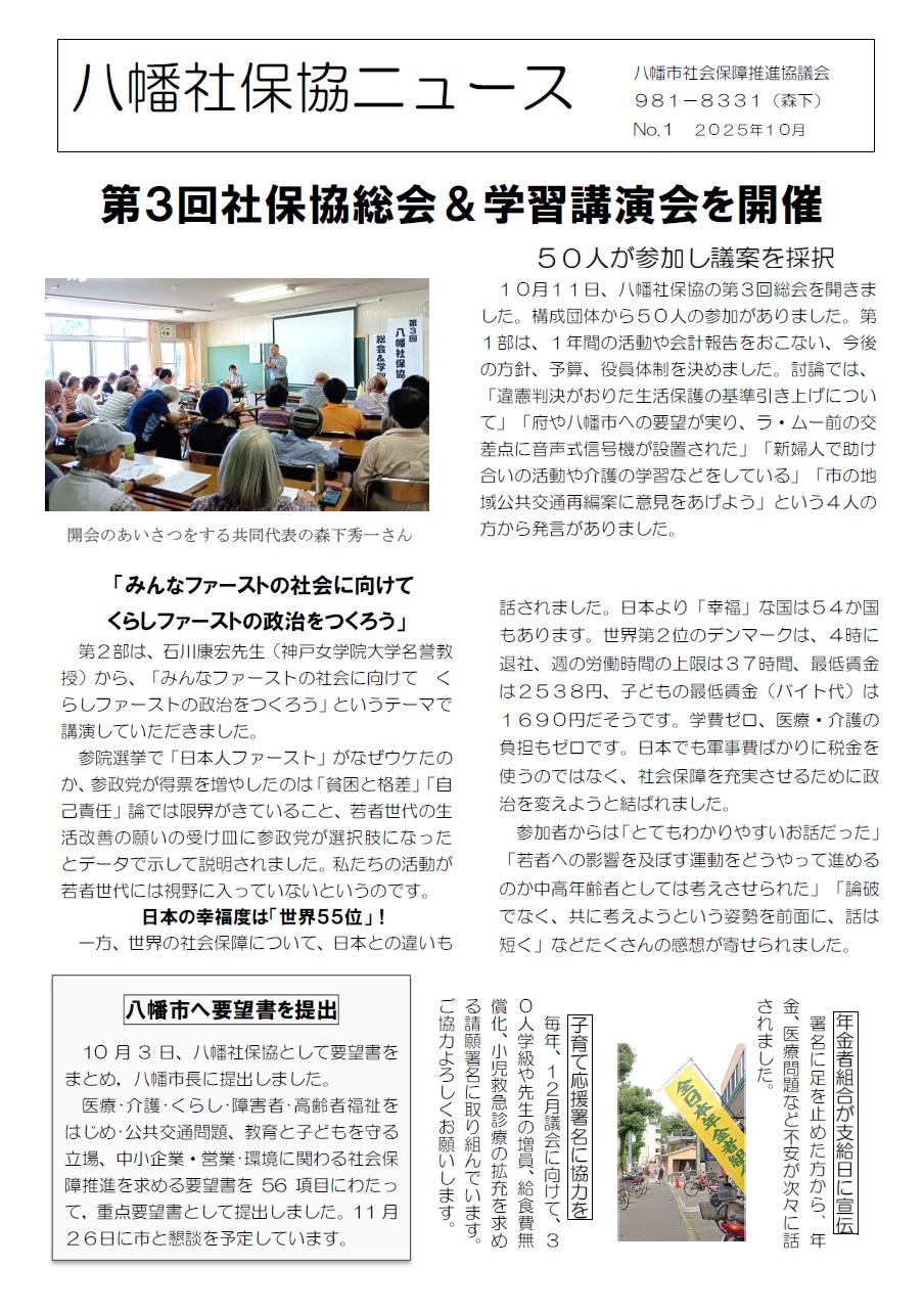 京都の社会保障制度の改善をめざして、医療・福祉関連の諸団体、労働組合、市民団体、女性団体などが集まり、1956年に創設されました。 共同して社会保障・社会福祉の充実の運動をすすめています。
